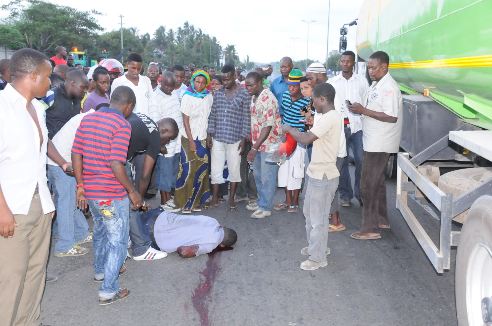 Mwananchi aliyetambulika kwa jina la Hussein Shaban (25) aliyekuwa mafanyakazi wa Mount Meru Petroleum Ttd, aligongwa na gari lililobeba mafuta na kufa papo hapo, gari hilo likitokea Bandarini lilipofika makutano ya barabara ya Chang'ombe na Mandela kwenye mataa ya kuongozea magari.
